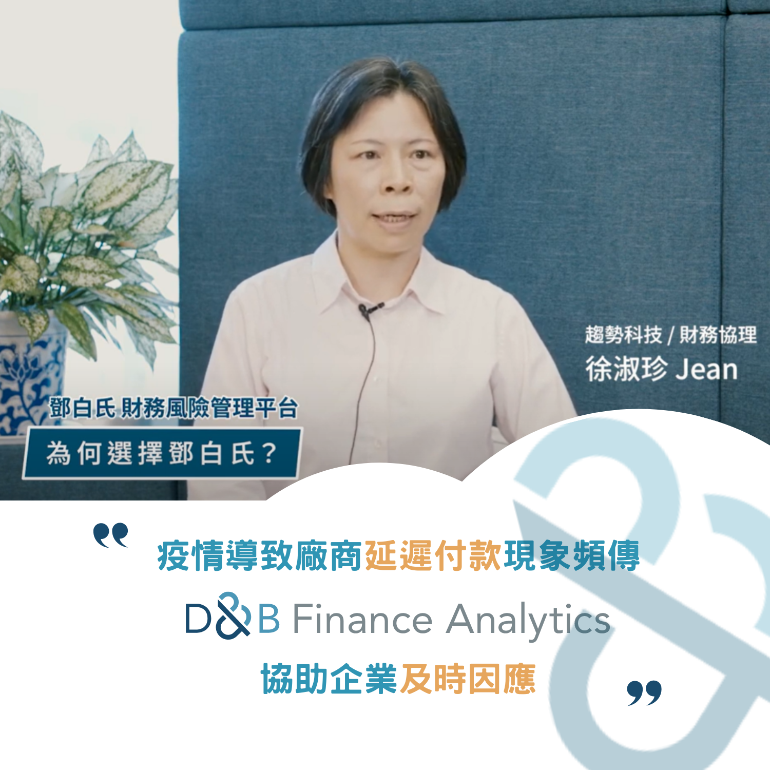徐淑珍特別推薦鄧白氏的數據服務給需要做企業徵信的中小企業廠商,尤其是台灣從事國際貿易的企業為數眾多,海外合作夥伴或代理經銷夥伴的查核因此格外重要,畢竟應收帳款的財務風險控管關係到一家公司的永續經營,不可不慎。凡事未雨綢繆,才能防範於未然,掌握致勝先機!
