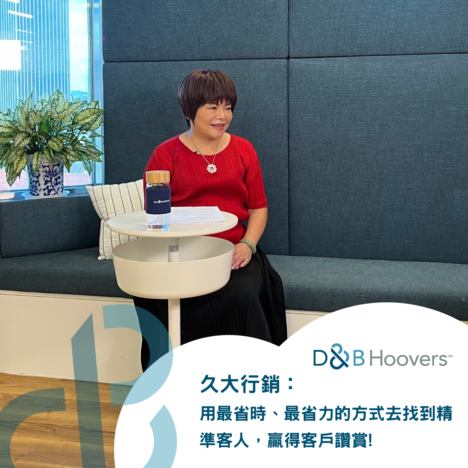 柯美如指出,她認識鄧白氏已有十三年左右的時間了,從她還在做傳統產業網路行銷的業務,因為使用鄧白氏資料庫,幫助客戶找到客戶的經典客人,這個成功的經驗,讓她更加明白,鄧白氏作為全球領先的商業數據分析與決策的領導者,擁有全球最大、最廣的商業資料庫,覆蓋全球240多個國家地區,全球總計逾5,000位諮詢顧問、分析師、研究員;商業資料庫涵蓋超過5.2億筆企業資料,協助全球各地大中小型企業強化商業績效、管理風險和挖掘商機。因此,當久大行銷籌組公司時,她就非常明確將鄧白氏作為策略結盟夥伴,也從那時候開始使用鄧白氏全球銷售加速平台(D&B Hoovers),主要的目的是為了協助台灣廠商尋找有價值的對象以進行客戶開發。