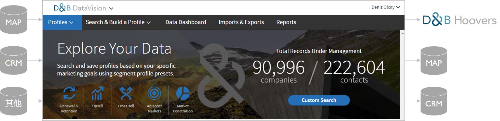 DataVision 協助 B2B 行銷人員對其全球客戶和潛在客戶的資料進行整理、分類及視覺呈現,協助業務決定發展目標。透過將企業已有的客戶屬性與鄧白氏資料庫中的公司和聯絡人資訊互相比對。