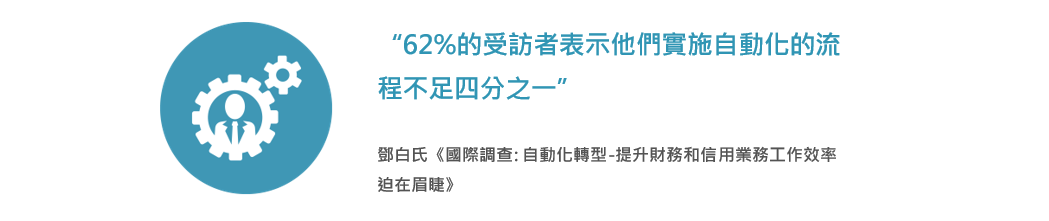 這項研究發現,儘管87%的受訪者認為自動化將在未來三年提高各個職能部門的工作效率,然而大多數公司還未充分發揮自動化的潛力。雖然83%的受訪者正在將至少一個工作流程自動化,但62%的受訪者表示他們實施自動化的流程不足四分之一,其中的許多人難以進一步在組織內部充分發掘自動化的潛力。