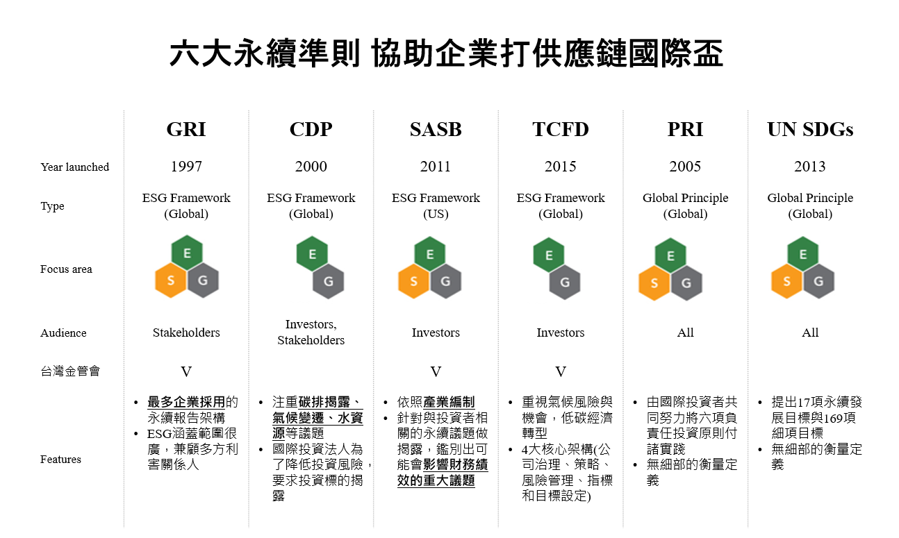除了許下永續目標並訂出確切時間表,雀巢進一步廣泛依循市場上的權威ESG標準,包括聯合國永續發展目標(UN SDGs)、全球報告倡議組織(GRI)準則、氣候相關財務揭露(TCFD)、永續會計準則委員會(SASB)準則等指標持續公布永續報告書,包括創造共享價值與永續報告(CSV & Sustainability Report)、TCFD報告、GRI & SASB指數等。雀巢並且已 被納入評比機構MSCI明晟全球指數、碳揭露計畫(Carbon Disclosure Project, CDP)的評比中。