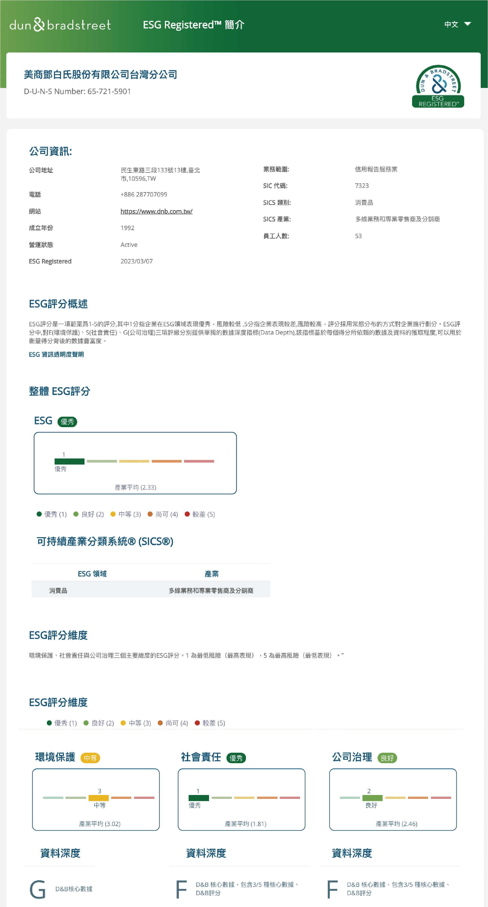 *鄧白氏持續開放企業申請「鄧白氏ESG永續標章」,協助企業將ESG數據轉化為企業永續發展的動力。